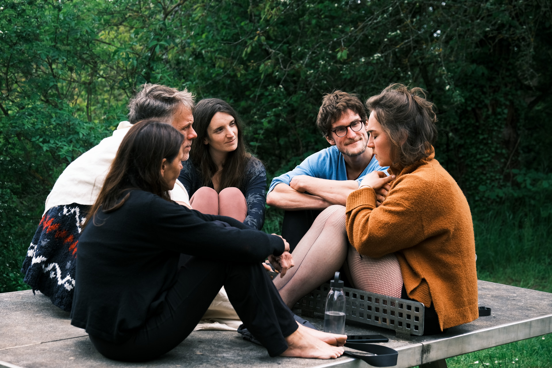 — a luz suave do sol no teu rosto, verde selvagem ao teu redor — e lembrar-te: hoje vais passar o teu tempo com pessoas dispostas a perguntar, dançar, tocar, conversar, sonhar, cantar, rezar, brincar. Não para obter respostas rápidas, mas para cocriar experiências vividas que nos dão outro tipo de informação – informação que uma mera resposta de conversa, de convenção, do cérebro só não seria capaz de nos dar.